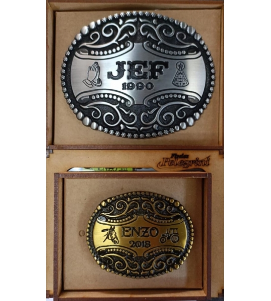 Personalize sua fivela com seu nome ou logotipo, sem nenhuma cobrança adicional.