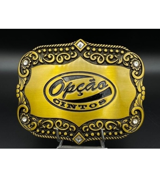 Fivela Premium Personalizada COM STRASS - Coloque seu nome ou Logo (Modelo QUADRADO)