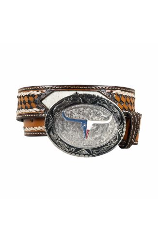 Cinto country de couro, costurado e bordado com apliques em couro e metálico. Produto resistente e feito com couro legítimo e materiais de alta qualidade!